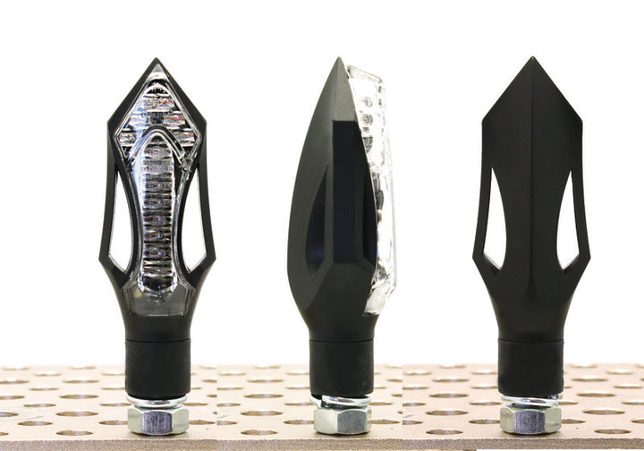 Dê à sua motocicleta uma expressão mais nítida com V peças flashers led de flechas -Um par de plass estreitos e agressivamente projetados com a moderna tecnologia LED. Com invólucro preto e vidro tonificado, eles se misturam bem em tudo, desde abraçar a rua até a compilação de Coste, enquanto dão uma luz forte e clara.