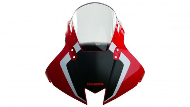 A parte inferior da tela de corrida corresponde ao perfil original, mas com uma extensão em forma de bolha no centro para melhorar a aerodinâmica e desviar a pressão do vento para longe do capacete. Disponível em todas as cores do MRA. Comprimento (mm): 461 Largura (mm): 363 altura (mm): 185 Cor: Mangueira colorida (mm): Material de manivela NULL: NULL Windshield Tipo: Racing