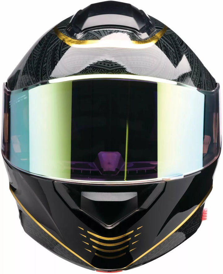 O revestimento de capacete de poliéster totalmente removível e que bebe umidade e almofadas de bochecha, queixo e aberturas de top, juntamente com ventilação traseira, permitem aumento do fluxo de ar, casca de policarbonato moldada por injeção, fáceis de remover queda de queda de queda queda. Fácil de operar usando fígado montado lateral, bolsos de orelha para alto-falantes, inclui o RST Gold Shield