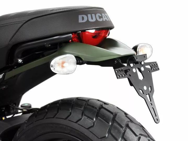O suporte da placa é extremamente durável e à prova de intempéries., Pó preto revestido. , O titular da placa pode ser usado para qualquer tipo de placa (largura de 175 mm)., Nenhuma modificação da carenagem necessária., Ajuste de rolagem do ângulo de ancinho., Suporte ao indicador ajustável em 3 posições. Placa., Indicador Especial Montagens de luz (vendidas separadamente) necessárias para as luzes indicadoras de estoque., Kit inclui: 1 suporte da placa incl. Kit de montagem, luz da placa LED "E aprovado" incl. Suporte., Luz de volta com suporte.