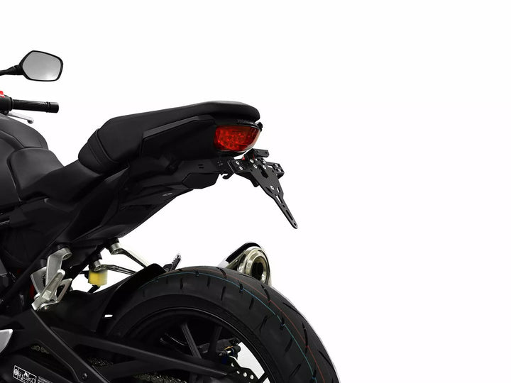O suporte da placa é extremamente durável e à prova de intempéries., Pó preto revestido. , O titular da placa pode ser usado para qualquer tipo de placa (largura de 175 mm)., Nenhuma modificação da carenagem necessária., Ajuste de rolagem do ângulo de ancinho., Suporte ao indicador ajustável em 3 posições. Placa., Indicador Especial Montagens de luz (vendidas separadamente) necessárias para as luzes indicadoras de estoque., Kit inclui: 1 suporte da placa incl. Kit de montagem, luz da placa LED "E aprovado" incl. Suporte., Luz de volta com suporte.